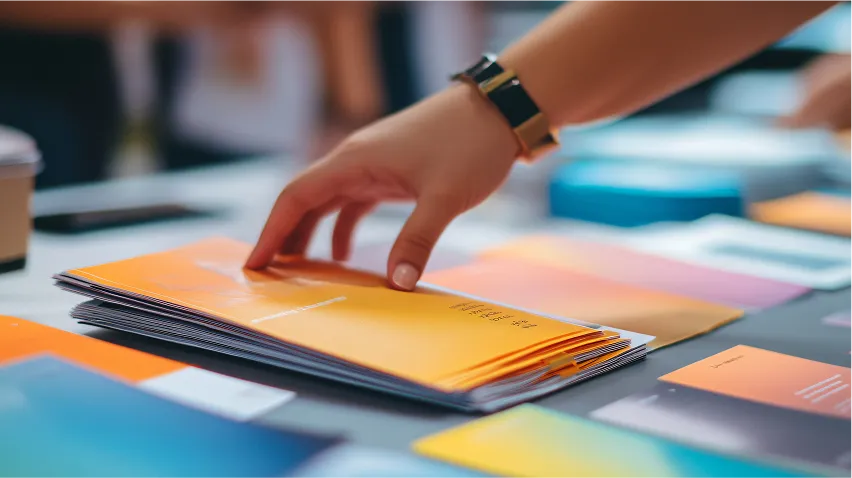 - Glossy flyers and premium brochure printing – Create a sleek, professional look that grabs attention with unique materials like glossy paper or matte paper.